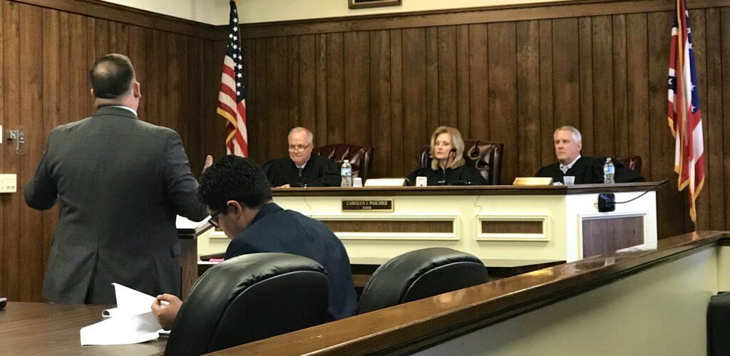 A three-judge panel of the 11th District Court of Appeals heard oral arguments April 18 in the case of the man convicted of murdering a Burton Township man in a botched murder-for-hire plot.