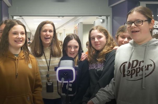 The Berkshire Middle School Honor Society and the Berkshire Makerspace teamed up on a recent project-based learning initiative called “Sharing Good News.” Honor Society students wanted to share positive news with the school community. Led by teachers Tiber and Kostiha, students developed a plan that involved setting up a live microphone in the hallway and inviting fellow students to step up voluntarily in a no-pressure zone and share something good.