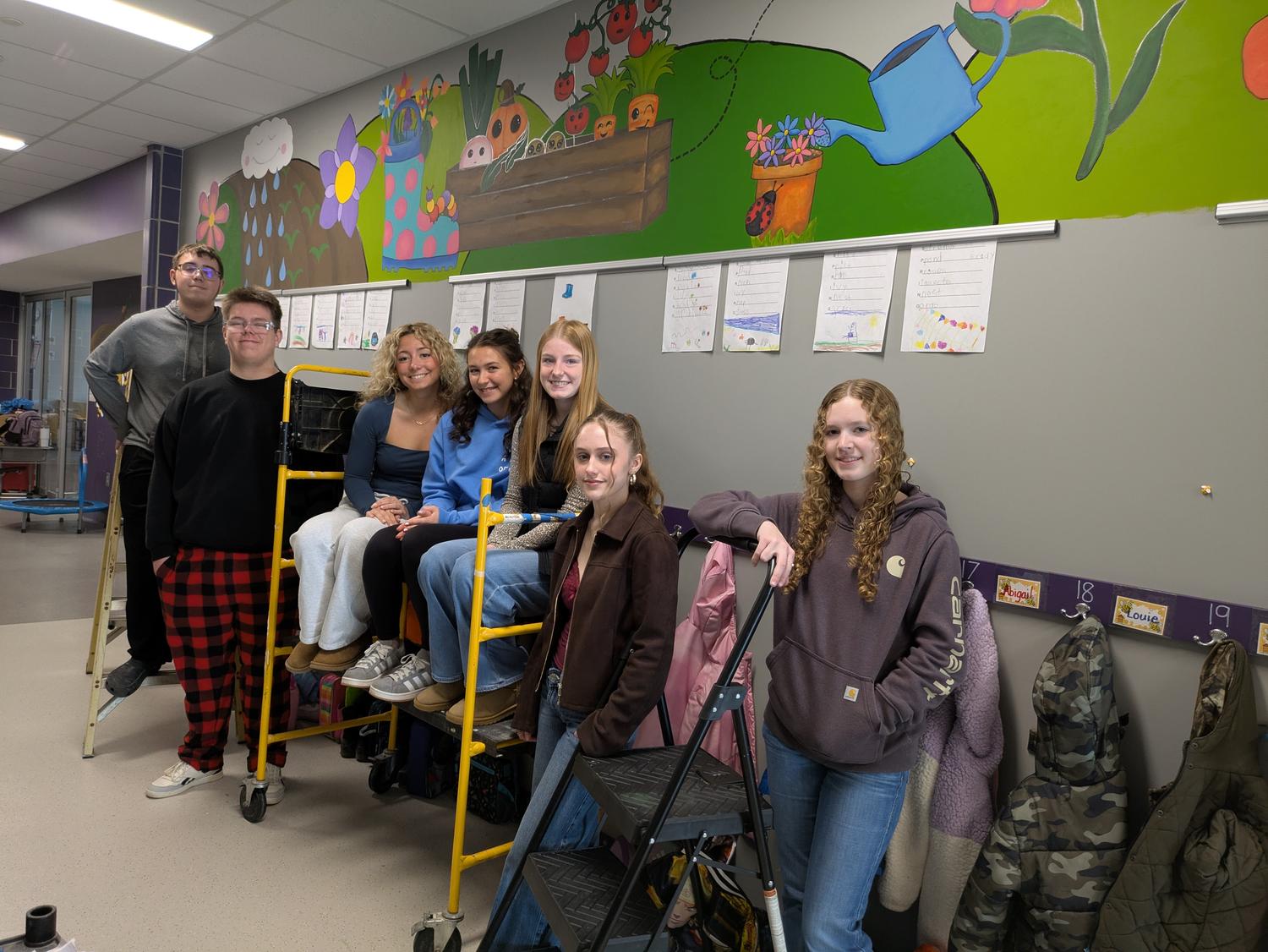 Berkshire High School art students recently completed a three-year mural project in the kindergarten wing. Art teacher Mrs. Alvord supervised the effort, which began after the kindergarten team asked for help brightening the hallway following the success of a previous mural.
