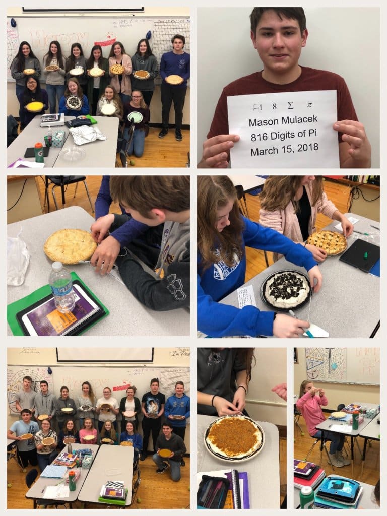 Special congratulations go out to junior Mason Mulacek, who memorized 816 digits of pi and broke the school record previously set in 2008. Additionally, students measured their pies’ circumference and diameter and divided the circumference by the diameter to calculate the value of pi for their pie before digging into their treats.