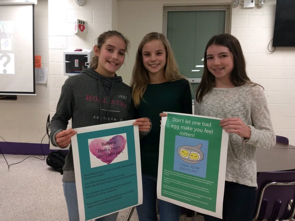 Eighth-graders shared their American history project of understanding the United States’ 19th century westward expansion, known as Manifest Destiny, and applying it to mapping and GPS technology now available to students. Seventh-grade students then showed the members of the board and Superintendent Stoddard their creative use of the vinyl printer technology by creating informative anti-bullying banners and positive slogans of encouragement to be hung up in hallways of the building.