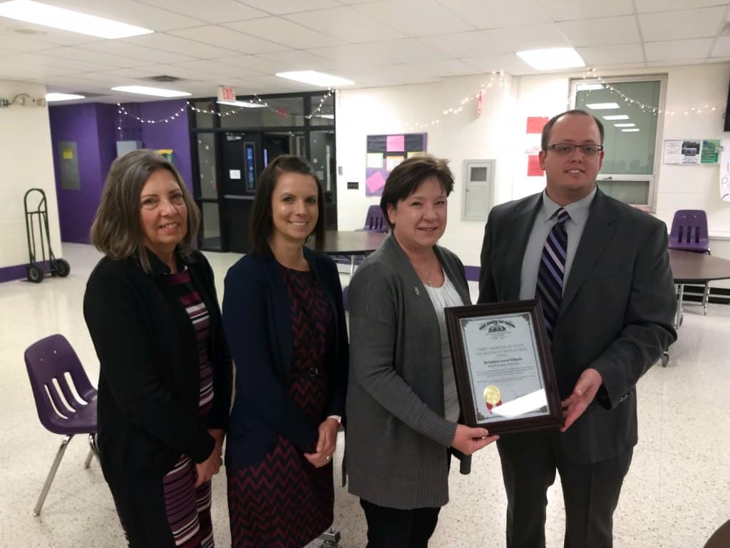 Berkshire Local School’s Treasurer’s Office, led by district Treasurer Beth McCaffrey, recently received the highly acclaimed Auditor of State Award with Distinction from the Ohio Auditor of State’s Office for its latest clean audit. Jim Shaw, the region’s representative for Auditor of State David Yost, made a public presentation at the regular meeting of the Board of Education on Dec. 10 and praised district Treasurer Beth McCaffrey for the exemplary reporting, high standards and dedication to sound stewardship of taxpayer resources during the last year.