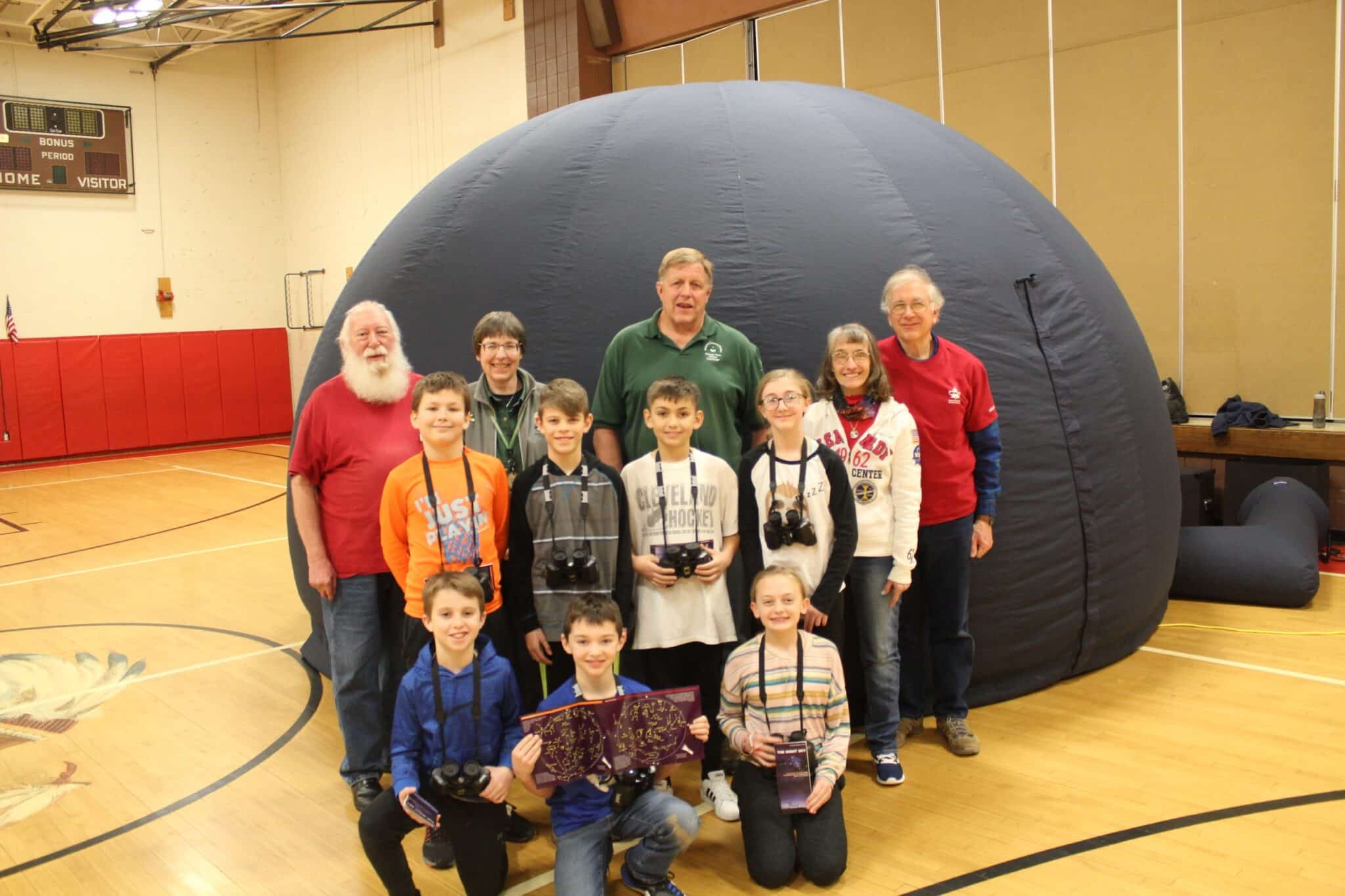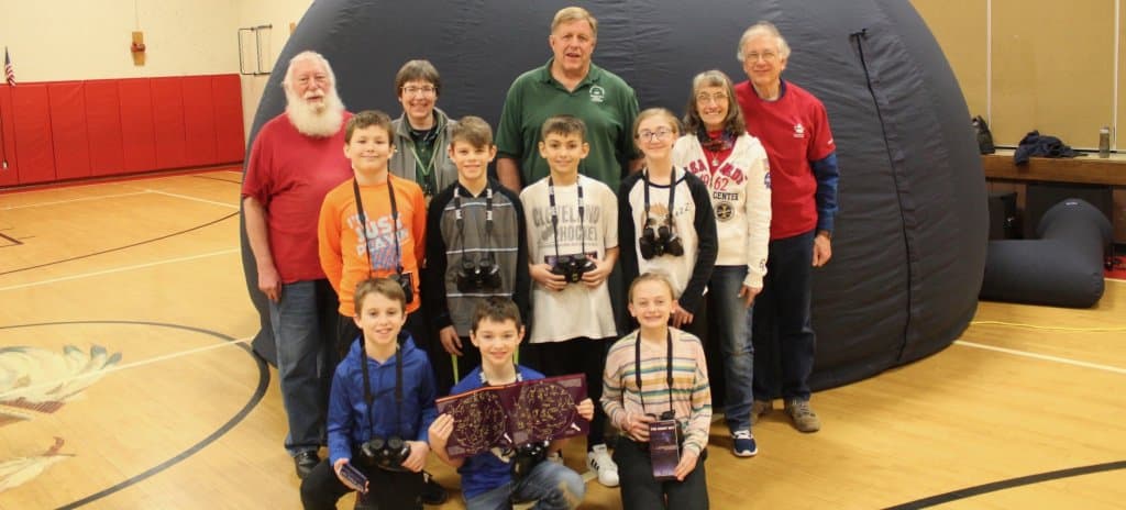 Fifth-graders at Ledgemont Elementary School had the opportunity to explore the vast reaches of the solar system without leaving the school gym recently, thanks to the Nature Scopes binocular education program provided by the Foundation for Geauga Parks (formerly Geauga Park District). Students utilized binoculars donated by the foundation to participate in three interactive, astronomy-themed stations led by naturalists and foundation volunteers. All content provided during the presentation matched Ohio Content Standards for fifth-grade science education.