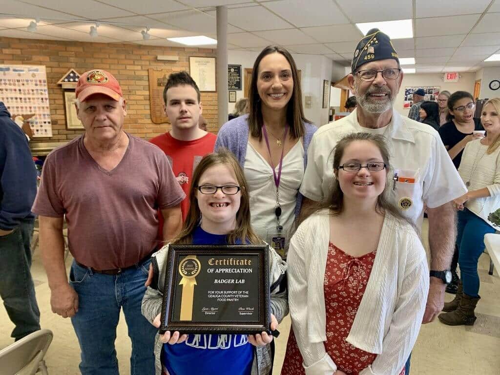Berkshire High School students who are part of the Badger Lab program honored approximately 70 veterans recently with their annual luncheon at the American Legion on Goodwin Street in recognition of Veterans Day. Preparing a celebratory lunchtime meal and then serving those who have fought to defend the country, approximately a dozen Badger Lab students put on aprons and helped guide veterans for a time of togetherness and pride. On hand were members of the Badger Lab staff to help serve fresh salad, soup, the trimmings and desserts that were donated by Great Lakes Growers, Great Lakes Cheese, Mary Yoder’s, Coffee Corners, the Veteran’s Food Pantry, Burton Floral, Maggie’s Donuts and Giant Eagle. Parents of Badger Lab students helped to support the event as well.