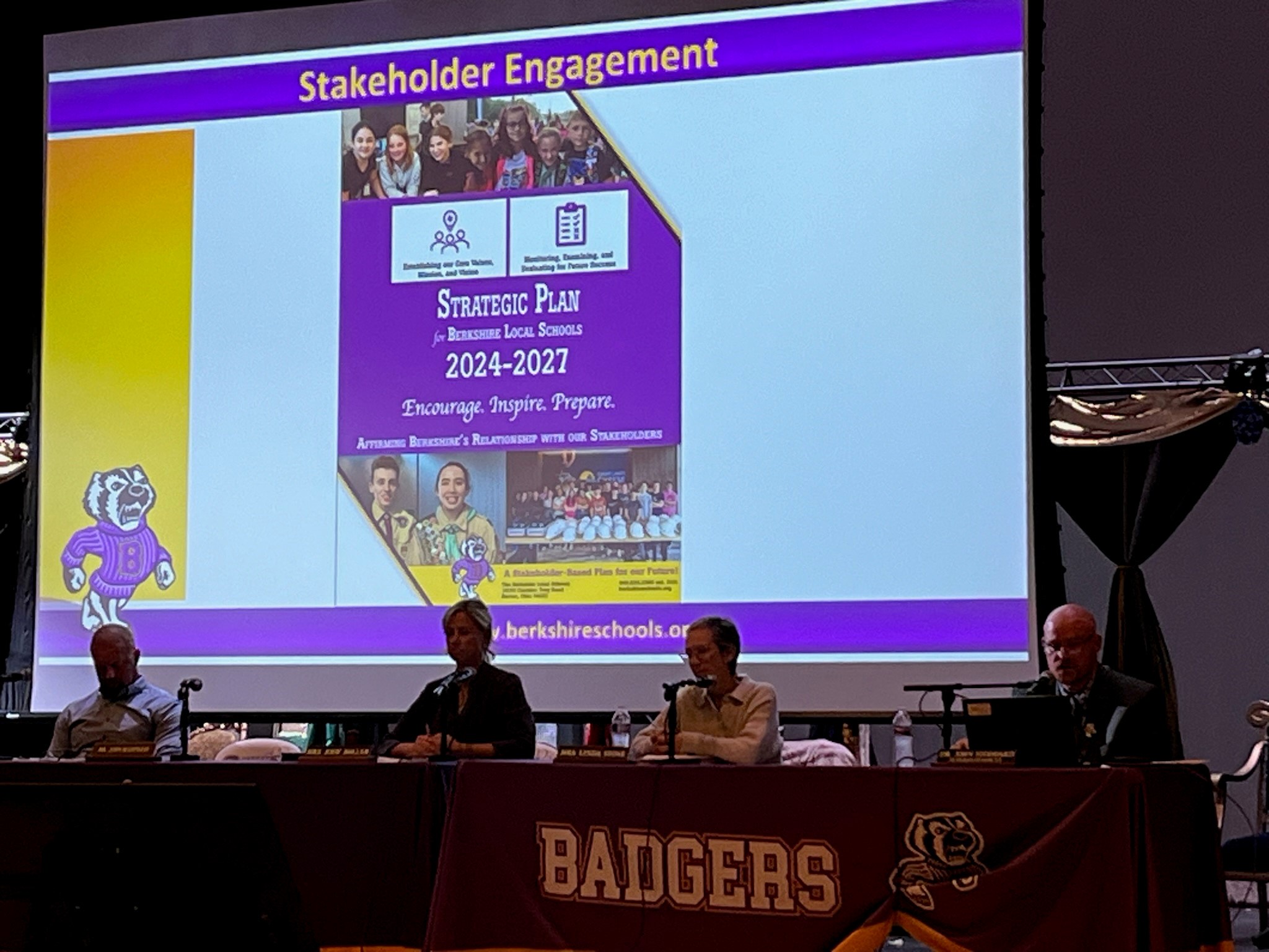 The newly adopted strategic plan was shared during the final segment of the State of the Schools, and Dr. Stoddard shared the newly adopted mission statement for Berkshire, which is: “Mission Statement: The Berkshire Local Schools exists to encourage lifelong learning, inspire students’ highest achievement, and prepare critical thinkers who embody leadership, character, and citizenship.”
