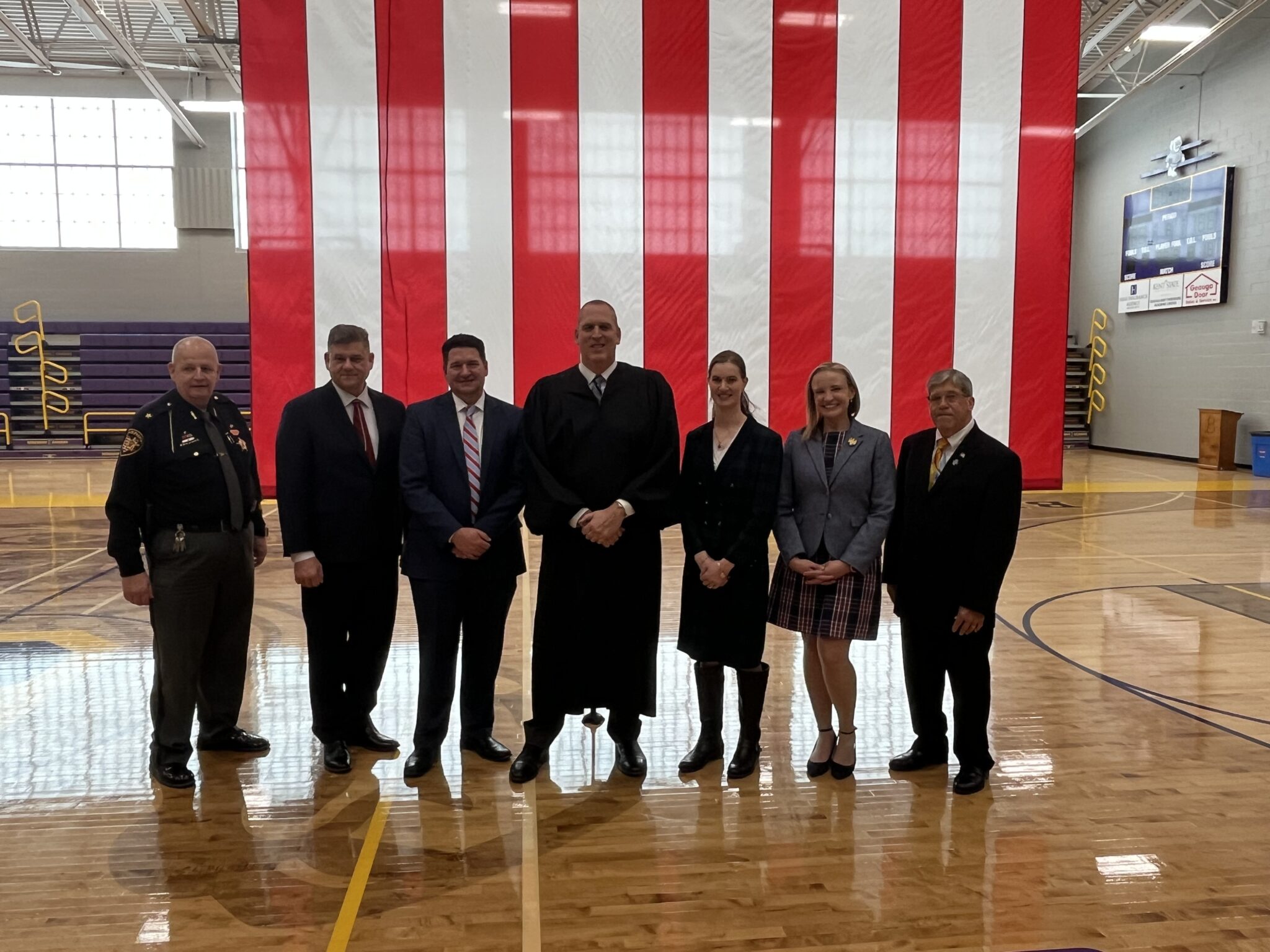 Berkshire Local Schools hosted a special ceremony on Dec. 17 in the gymnasium, where several local elected officials took their oaths of office. Geauga County Commissioner Jim Dvorak delivered opening remarks and introduced the honorees, including Judge Robert J. Patton (11th District Court of Appeals), Ohio State Representative Sarah Fowler Arthur (99th District), newly elected Geauga County Commissioner Carolyn Brakey, Geauga County Prosecutor James R. Flaiz, Geauga County Engineer-elect Andrew Haupt and Geauga County Sheriff Scott A. Hildenbrand.