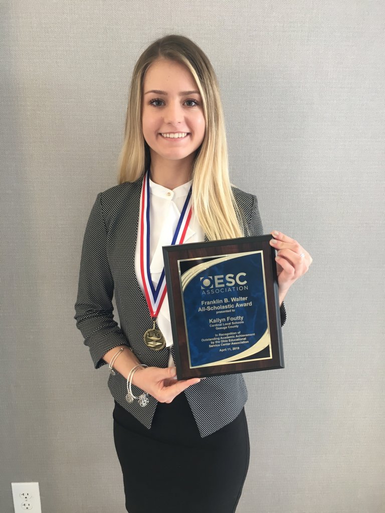 Kailyn represented Cardinal and Geauga County on April 11 when she received her award in Columbus at the Ohio Educational Service Center Association spring conference. The recognition was started by Ohio’s county superintendents in 1989 as a way to recognize outstanding senior scholars from each county in the state. Winners are selected based on their academic achievements, personal accomplishments and community service contributions.