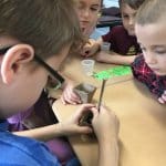 First-graders are learning all about what plants need to live and grow. With the help of science guy, Claire Zurbuch, aka Professor Z., students worked together to plant one group of bean seeds in trays with soil, water and access to sunlight. The other group of seeds was planted in the same soil, with water and very little to no access to sunlight. Students will spend the rest of the school year keeping an eye on their plants to compare and contrast how the two groups of plants grow.