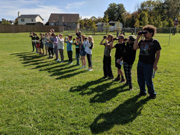 Participating in the Geauga Park District Nature Scopes program is one of the highlights of fifth grade. Each year all fifth-graders spend time working with the park district to learn more about the nature in their own backyards. Recently, the park district came to the middles school to teach students about binoculars and how to best use them outdoors to spot objects at a distance and up close.