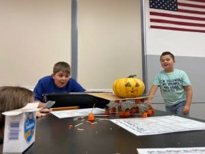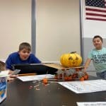 Jordak Elementary School third-graders had a blast in the science lab before Halloween participating in a STEM challenge using pumpkin candy corn and toothpicks. The objective was for scholars to work together in small groups to build a structure using just candy corn and toothpicks strong enough to hold a 1 or 2-pound pumpkin. They came up with great ideas for their structures and the looks on their faces when they tested the pumpkins out on them were priceless.