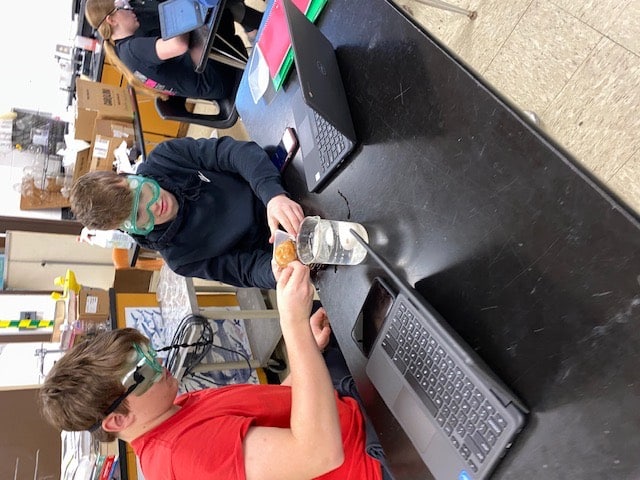 Quite the eggs-periment in high school biology and Honors biology classes. With the help of teacher Ben Clutter, scholars used decalcified eggs to explore the selective permeability (what gets through) of cell membranes as well as explore the impact of osmosis on the cell. Students recorded the mass of an egg every 10 minutes for an hour after immersion in either syrup or water. They then calculated the percent change in mass. Students found that syrup eggs lose mass after immersion, demonstrating a hypertonic solution and eggs immersed in water gain mass, demonstrating a hypotonic solution.