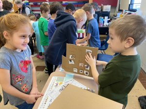 Every year, the first-grade classes are tasked with the assignment of choosing an animal to research. Following their research, students then create a habitat for their animal and put on a showcase for the rest of the school. As other students are coming through the showcase, they ask first-graders questions about their animal and its surroundings. This year everyone saw a lot of cats and dogs, a couple of snakes, hamsters and even a lizard on display.