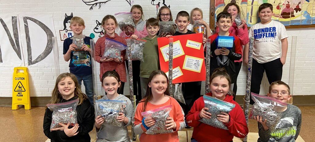 Mr. Zurbuch generously made the collection tubes for us. First through fourth-grade classes and STARS classes all filled their tubes – with baggies of additional tabs making them all overflow. The Ronald McDonald House will recycle the tabs Cardinal sends them and then keep the profit, which again, benefits those receiving medical treatment.