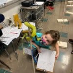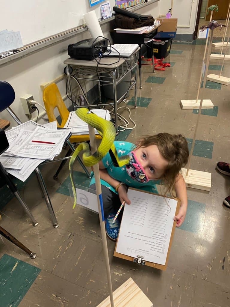 This year, because of the coronavirus, science consultant Claire Zurbuch created a different way for students to complete the lab. Normally, students work in groups and travel from table to table to identify the animals. This year, the animals were attached to individual poles and students had to walk around the room on their own, visiting one station at a time, and try to determine to which classification each animal belonged. The students then recorded their answers on a sheet.