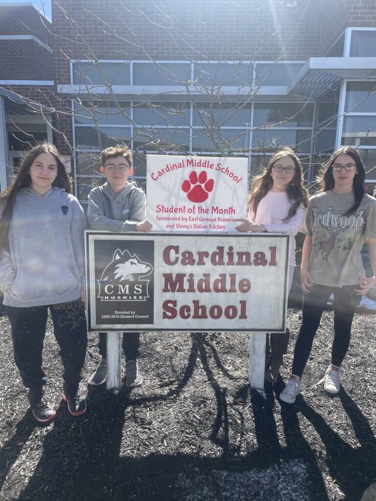 Cardinal Middle School congratulates its Students of the Month for February. Special thanks to East Geauga Kiwanis and Vinny’s Italian Kitchen for sponsoring the students.