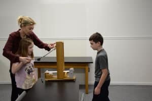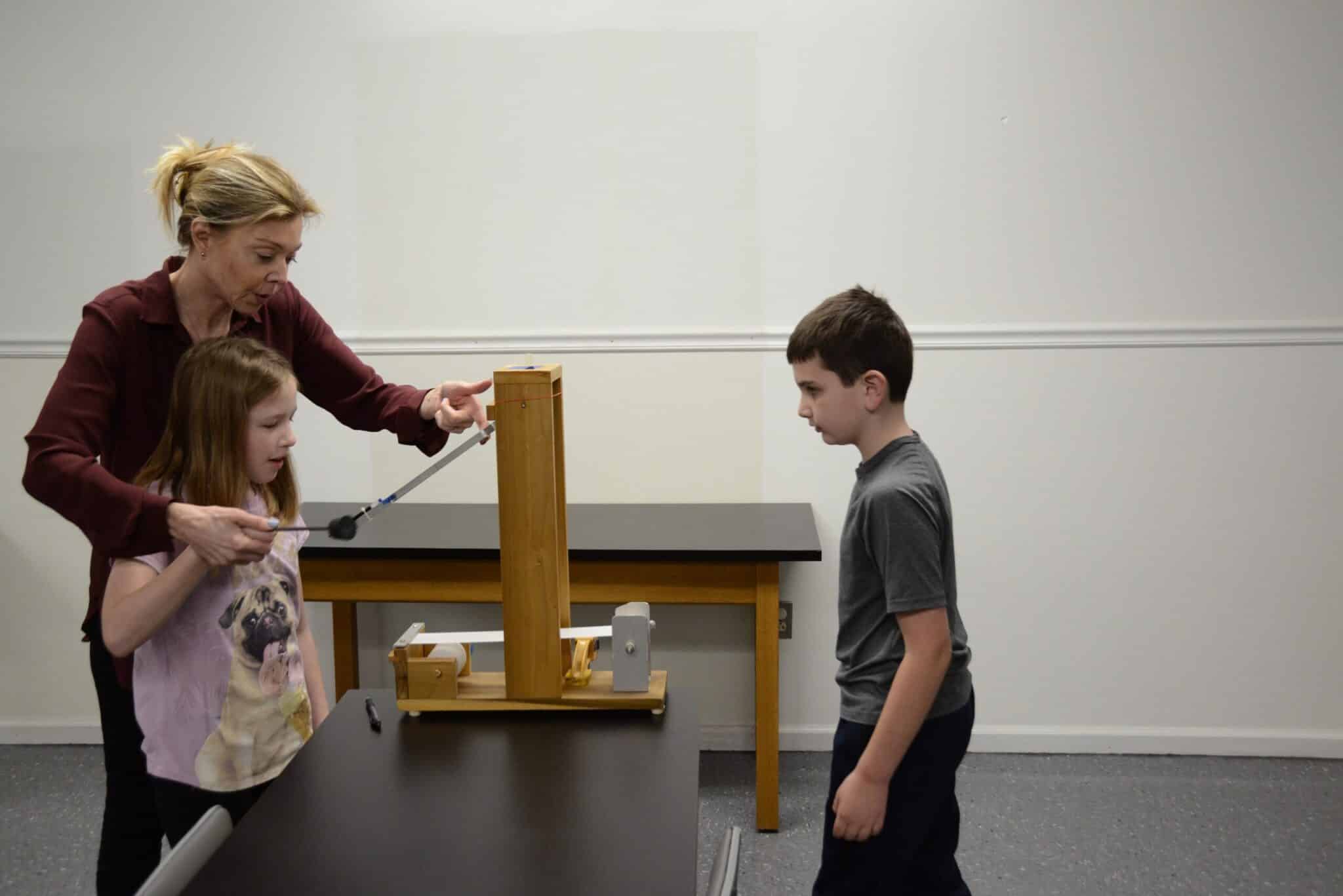 Jordak Elementary School third-graders recently conducted a science experiment on sound. The experiment demonstrated the science of sound by using an aluminum tuning fork where the students struck the fork to get it to vibrate. At the end of the tuning fork was an ink cartridge that passed over a paper strip and made marks on the paper. Since the fork was vibrating, the marks were waves representing the sound waves from the tuning fork. The kids loved doing the experiment, the idea of which came from Claire Zurbuch (Mr. Z).