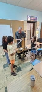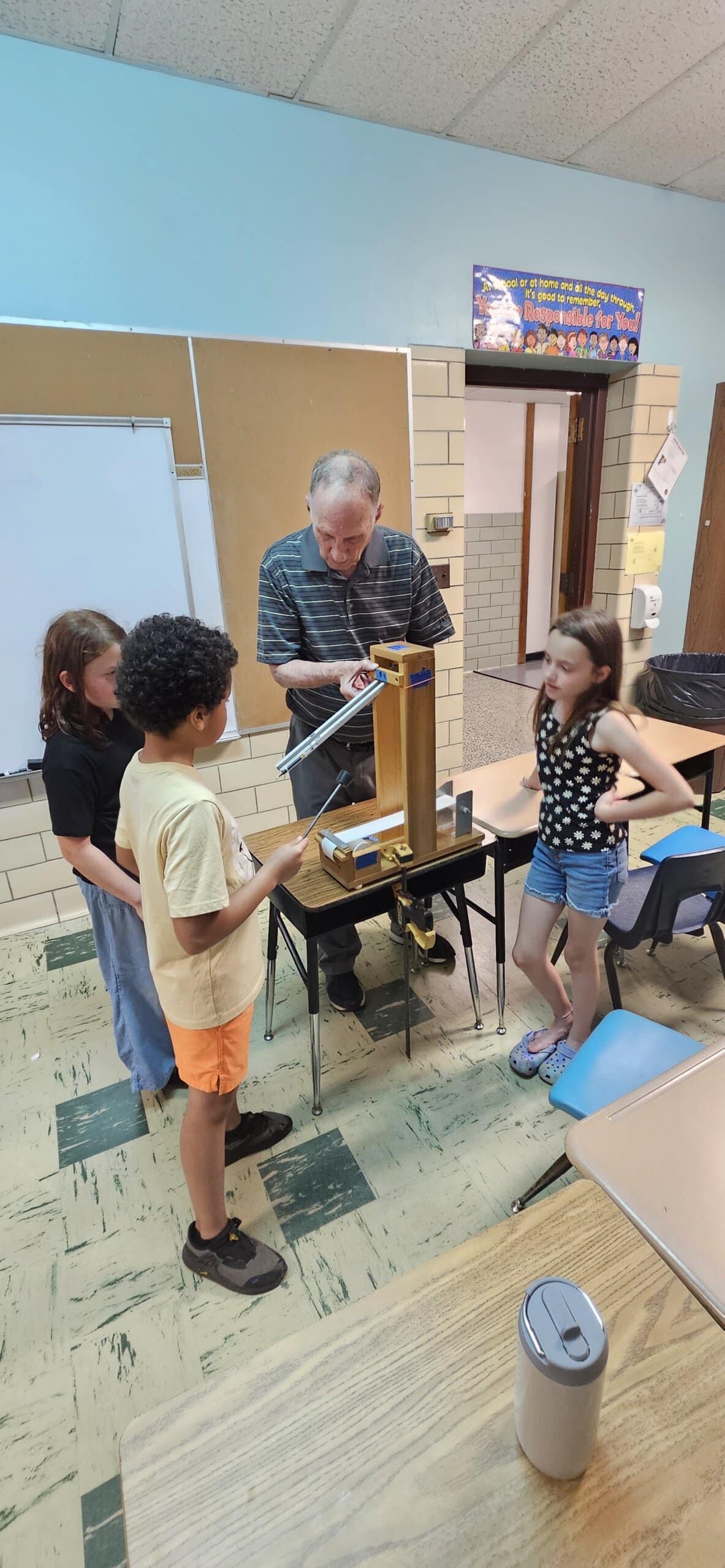 Third-graders recently conducted multiple experiments on sound. They had tuning forks in which the shorter the fork, the higher the pitch and the longer the fork, the lower the pitch. There were machines with wooden holders where the tuning fork created the waves that were recorded by a pen on the piece of paper by the length of the tuning fork. Then they demonstrated with a machine where they could see their own wavelengths from the microphone into which they were talking.