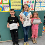 East Geauga Kiwanis Club recently recognized Cardinal Elementary School third-graders (l to r) Tanner Prebish, Alexis Fay and Hadlei Tingley for their exceptional academic success and positive behavior in the classroom during the third quarter.