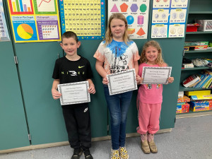 East Geauga Kiwanis Club recently recognized Cardinal Elementary School third-graders (l to r) Tanner Prebish, Alexis Fay and Hadlei Tingley for their exceptional academic success and positive behavior in the classroom during the third quarter...