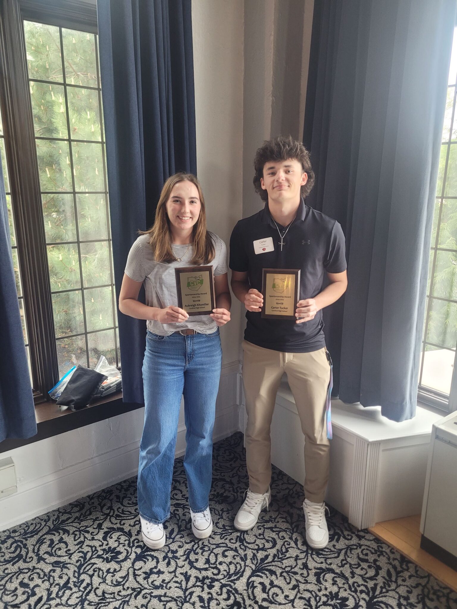 Seniors Aubreigh Kitzmiller and Carter Tucker earned the 2025 CVC Sportsmanship Award.