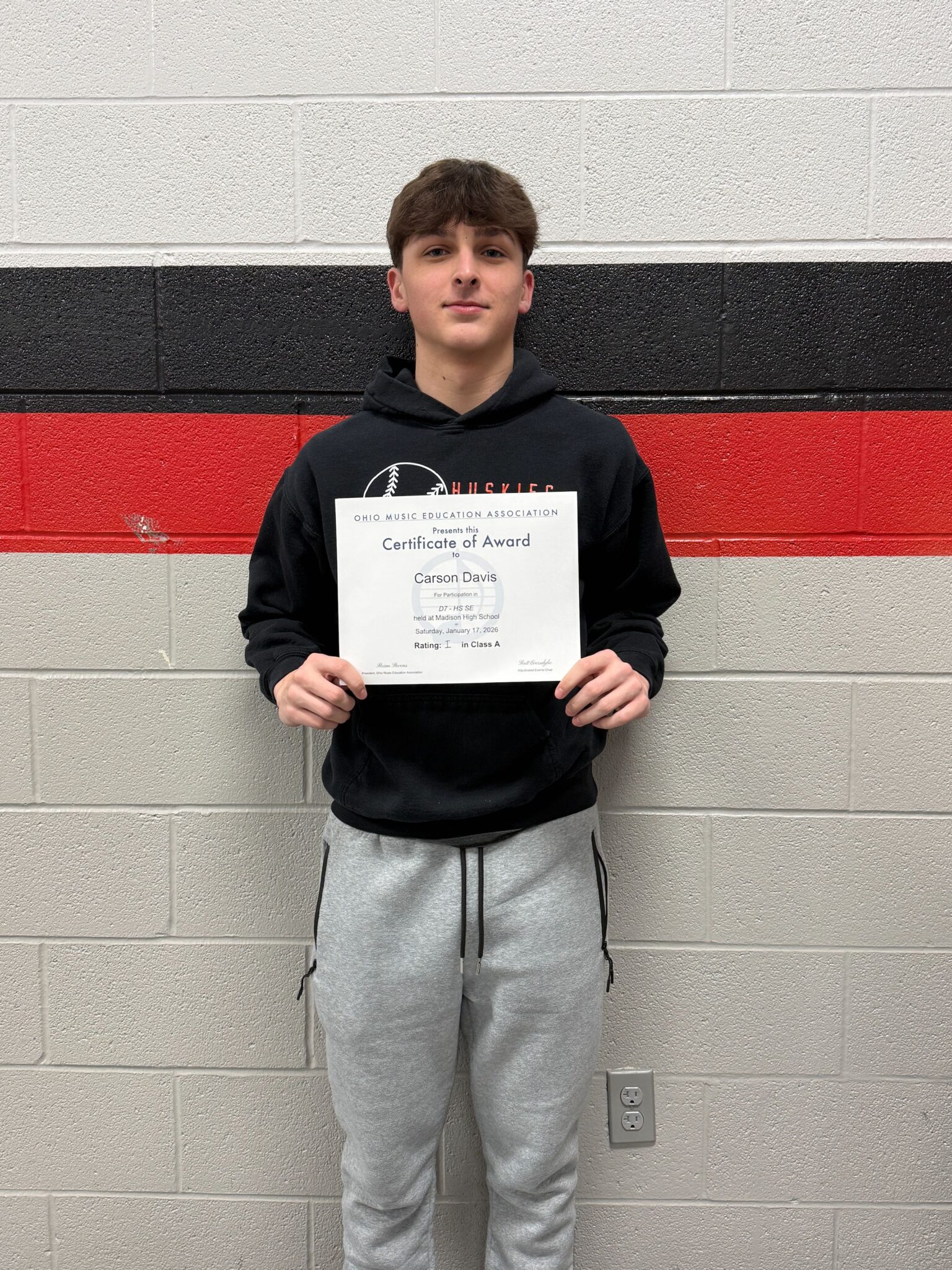 Solo performers included Emma Clinger (alto saxophone, Class A, rating 1), John Loving (baritone saxophone, Class A, rating 1), Carson Davis (snare drum, Class A, rating 1), RJ Miller (tuba, Class C, rating 1) and Zoey Homa (flute, Class B, rating 2).