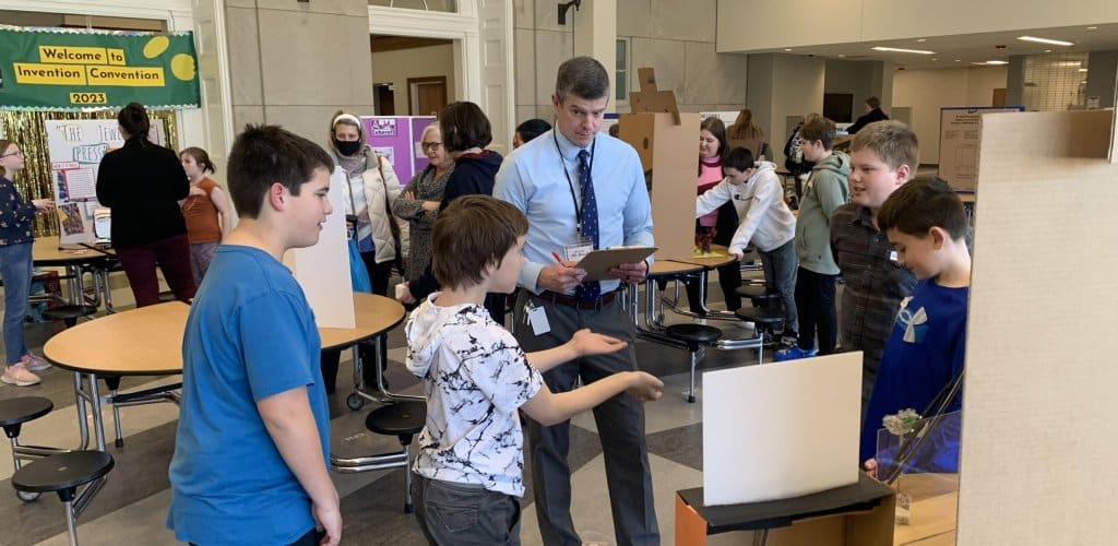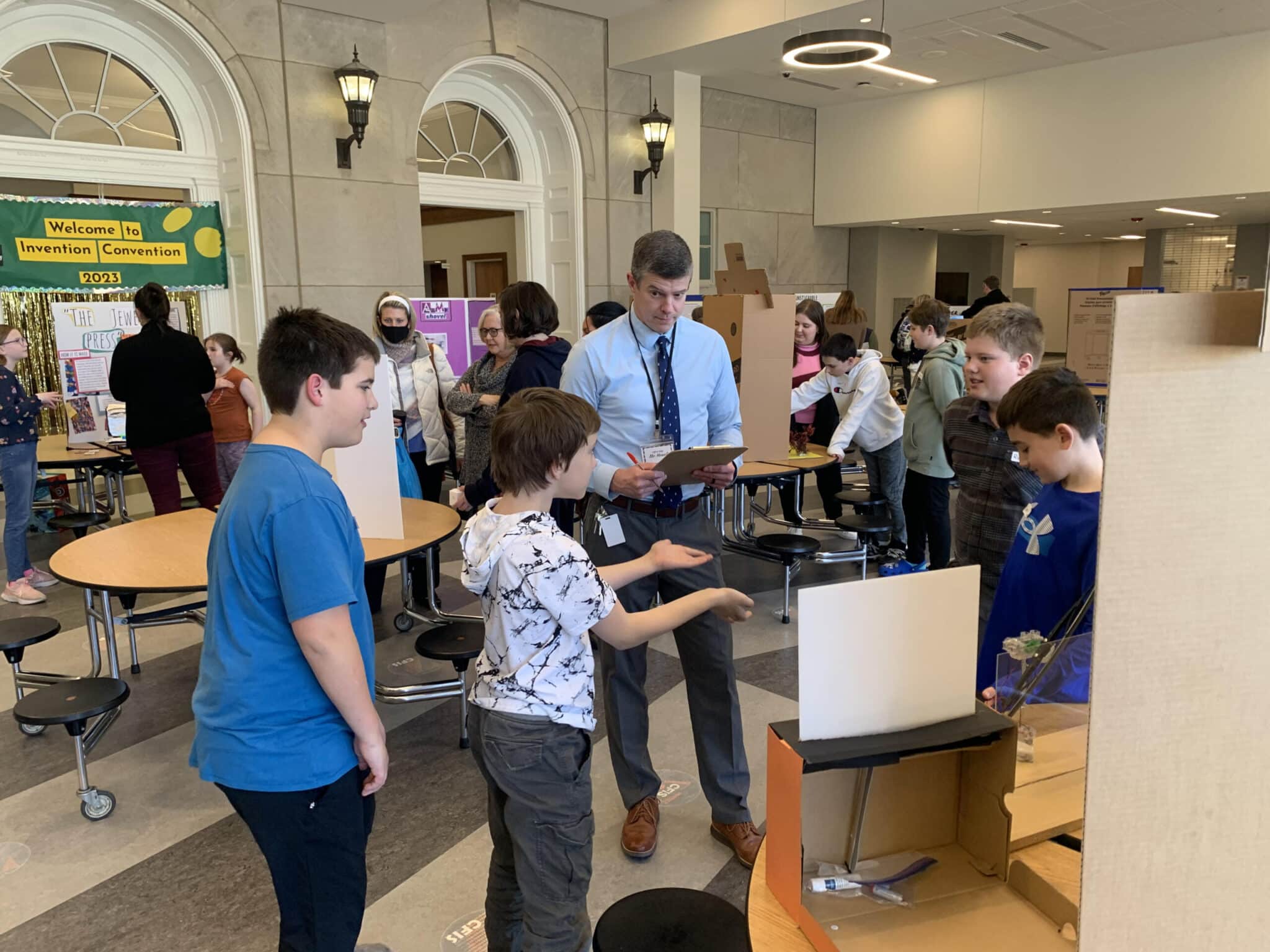 On March 15, students participated in an Invention Convention Showcase. Students created a tri-fold poster board with information about the problem, solution, research/background, steps they took, materials and more. In addition, they had to create a model or prototype of their actual invention. Lastly, students had to present their invention and answer questions to a group of judges, parents and other adults during the showcase.