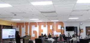 The event began with an introduction from Principal Laila Discenza, who explained the middle school’s commitment to “learner-centered experiences” that spark student engagement and ownership. ELA classes embrace essential questions, discussion, and critical thinking to advance both academics and life-long learning skills.