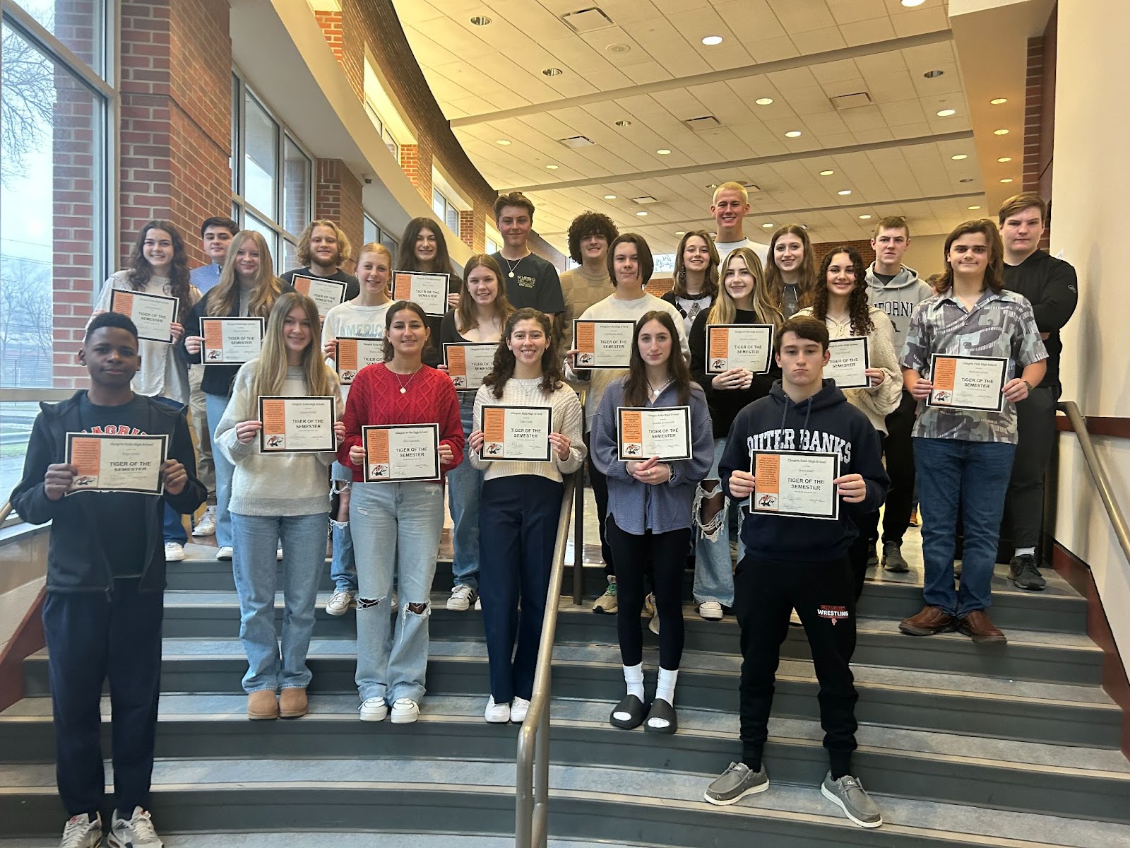 Tigers of the Fall Semester of the 2023-24 school year are Reem Aitelkadi, Sidney Austin, Christopher Barth, Ted Brown, Addilyn Brudno, Sofia Clark, Ella Crlenjak, Brigitte Edwards, Bianca Fant, Ella Goyzman, Hailey Haddon, Layla Hauserman, Tys Hilbers, Audrey Holmes, Bryce Jones, Spencer Kaas, Ben Lewis, Reed Livingston, Braden Mooney, Luke Nelson, Eric Nemunaitis, Isabella Radomsky, Isabella Rothschild, Vika Ruban, Valerie Spieth, Owen Stull, Lauren Sutliff, Braeden Thompson, Lily Victoroff and Thomas Wilkinson.
