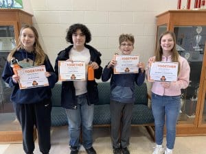 Tigers of the Month for February are seventh-graders Maddie Livingston and Quinn Warren; and eighth-graders Lilia Cowan and Liam Jerina.