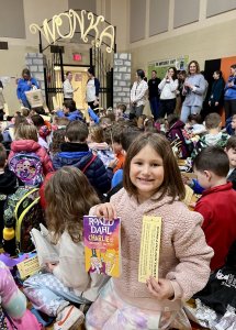 Over the next month, Gurney students, staff, and families will connect with Charlie, Willy Wonka, and the themes in the book in many ways. Students will take a replica Willy Wonka home then write or draw a picture of the fun they had with him. Each Friday a masked reader will read the nightly reading. Students will try to guess who is reading before the reveal on Monday morning. The service project this year is in conjunction with the Harvest for Hunger food drive connecting it to how Charlie and his family couldn’t afford healthy foods. In addition to classroom activities, students and their families can participate in a scavenger hunt in downtown Chagrin.