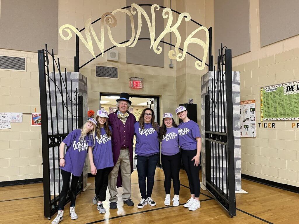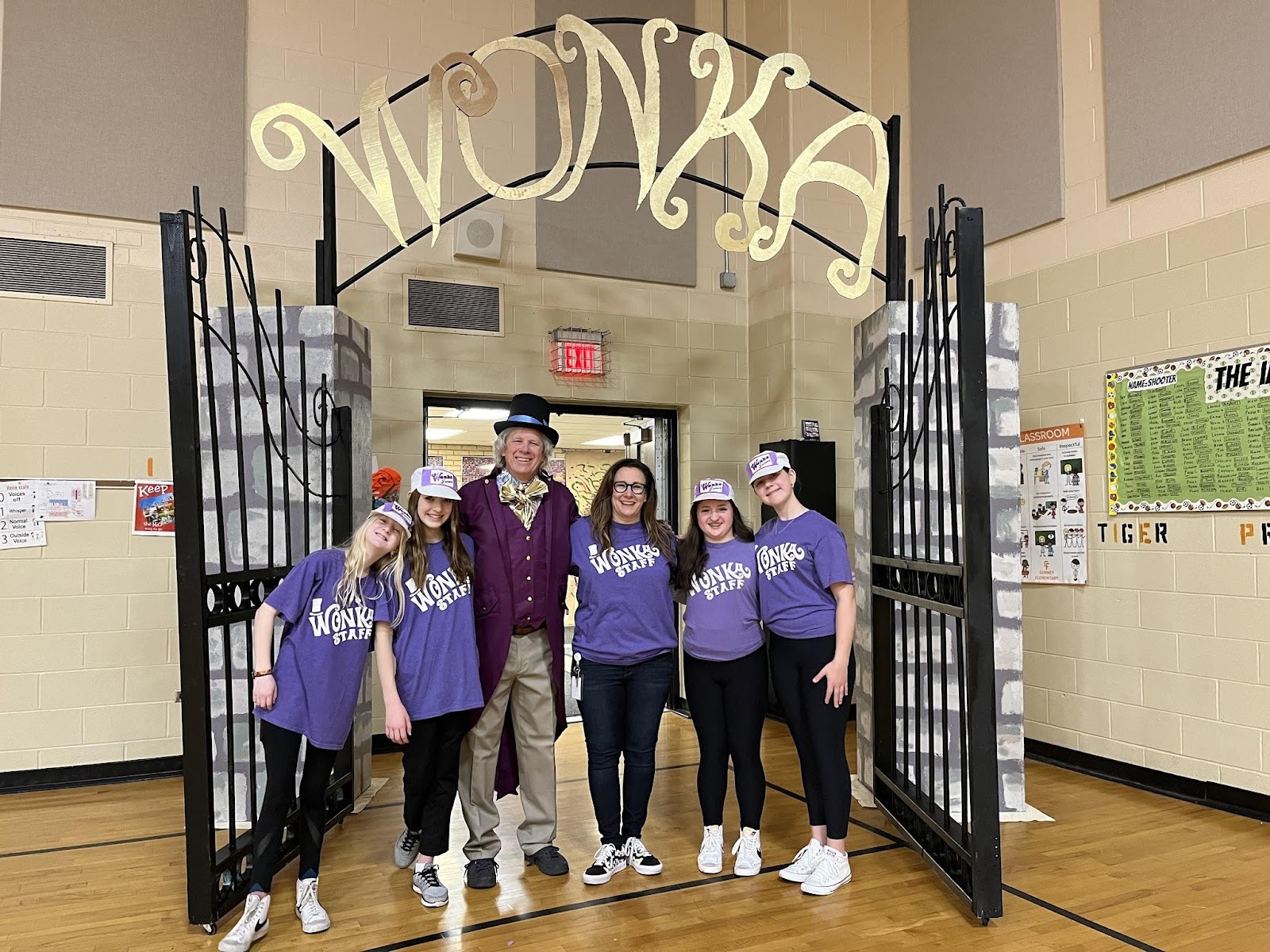 A special thank you goes out to retired intermediate school teacher Gary Dole for transforming into Willy Wonka and to the Oompa Loompas, current intermediate school students Avery Gebler, Mairead Malley, Grace Pelsozy and Emma Uehlinger who surprised Principal Rachel Jones with the letter from Willy Wonka.