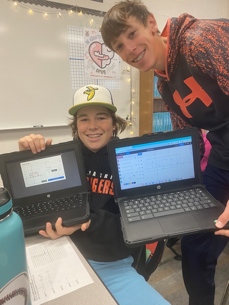 Chagrin Falls Middle School eighth-grade algebra students elevated their understanding of linear equations by creatively writing their names with math...