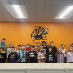 Chagrin Falls Middle School (CFMS) has recognized four exceptional students as January 2025’s Students of the Month for their exemplary demonstration of the Tiger Techniques: Think, Integrity, Grit, Effort and Responsibility. The seventh- and eighth-grade teaching teams selected two male and two female students who received tiger water bottles from the PTO in recognition of their achievements.