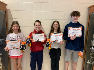 The seventh- and eighth-grade teaching teams collaborated to select two male and two female “Tigers of the Month.” Each honoree received special tiger water bottles provided by the school’s PTO.
