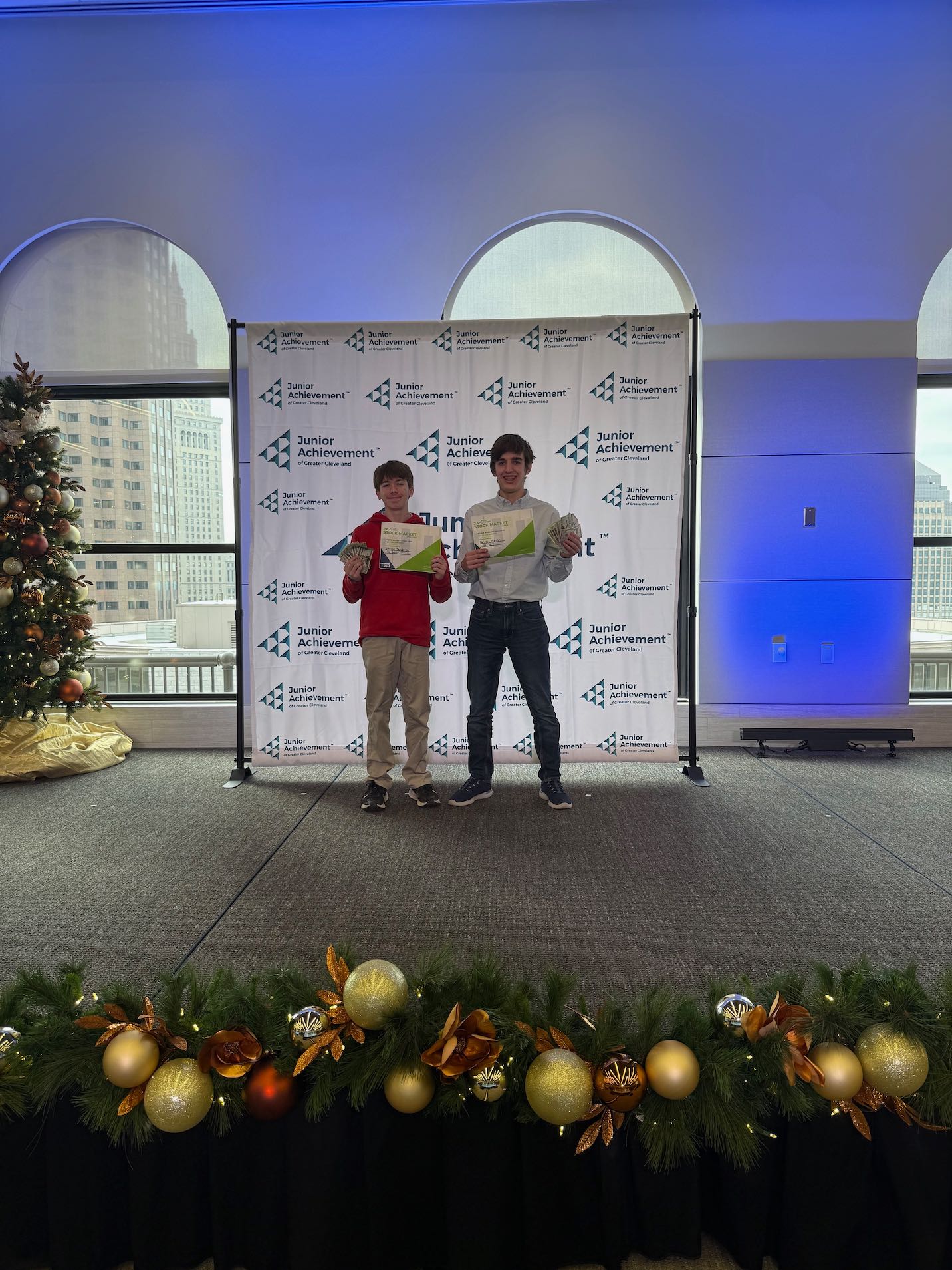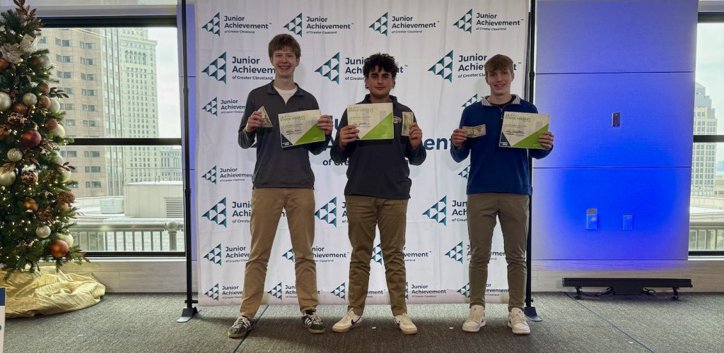 On Dec. 19, seven teams of 22 students from Chagrin Falls High School’s financial literacy courses competed in the 2025 Junior Achievement Greater Cleveland Stock Market Challenge at The Federal Reserve Bank of Cleveland. This year’s competition was the largest to date with 60 teams from 12 Northeast Ohio high schools including Chagrin Falls, Cleveland Heights, Laurel School, Mayfield, North Royalton, Rhodes School of Environmental Studies, Richmond Heights, Polaris Career Center, St. Edward, Thomas W. Harvey, University School, Westlake, West Geauga and Willoughby South.
