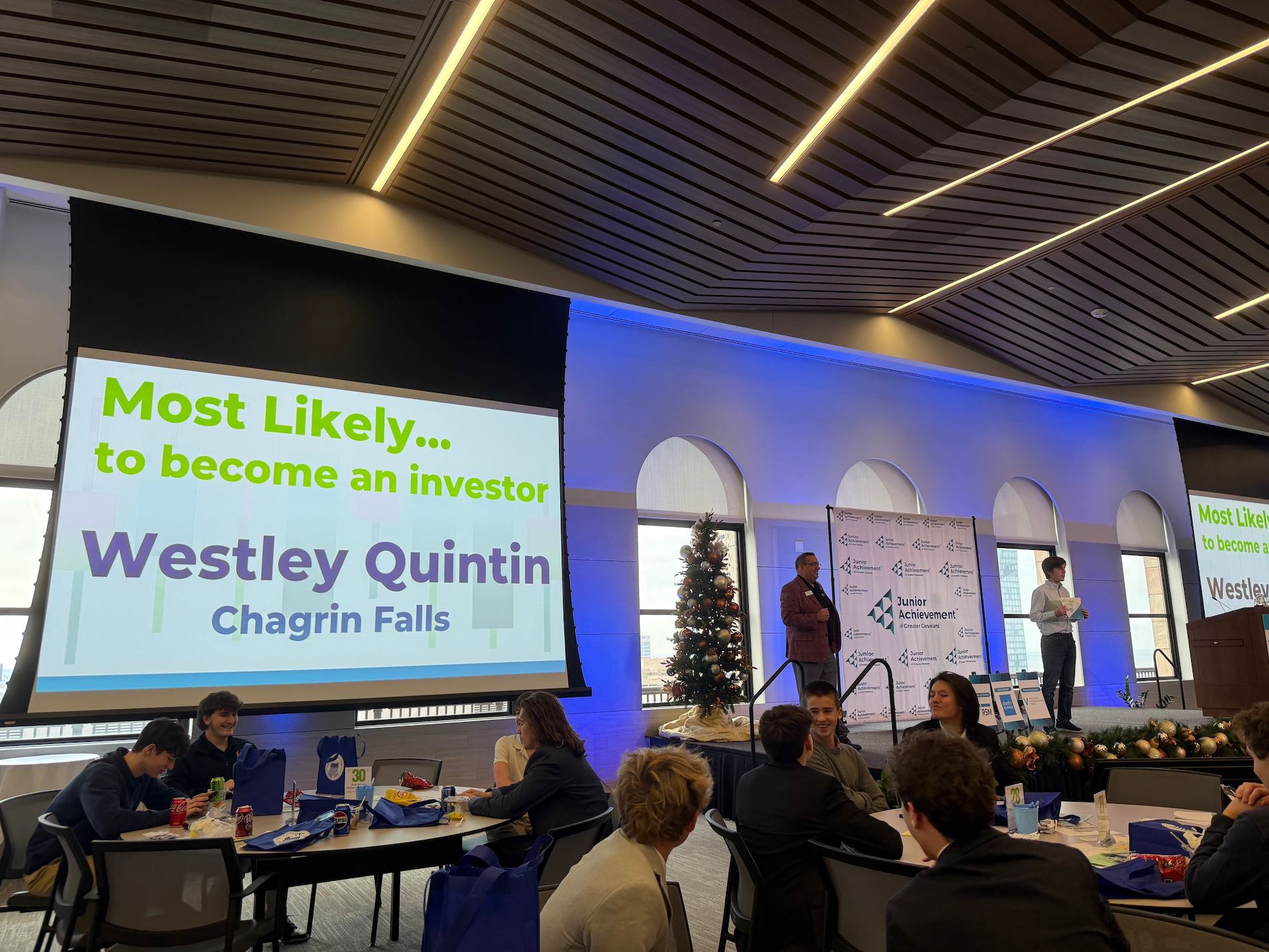 Westley Quintin and Johnny Tenebria’s team (YeWest) finished first with a portfolio value of $1,726,284 and won $500 cash prize. The first place finish qualified them for the Junior Achievement Stock Market Game Nationals known as Future Bound to be held at Boston University June 7-11, 2026. Westley Quintin won the superlative given by Junior Achievement staff as “Most Likely to Become an Investor.”