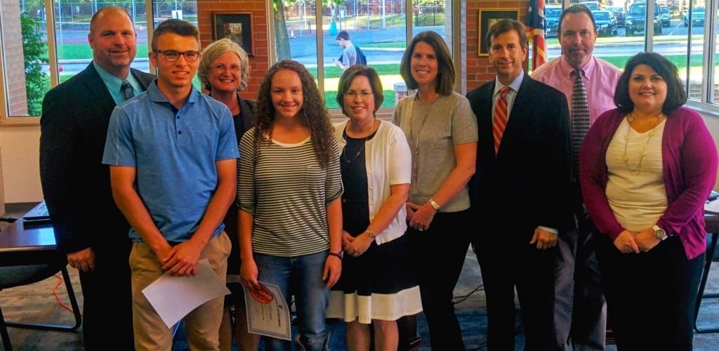 Daniel Berlin and Leah Gillespie are recognized at the September Board of Education meeting for achieving a perfect ACT score.