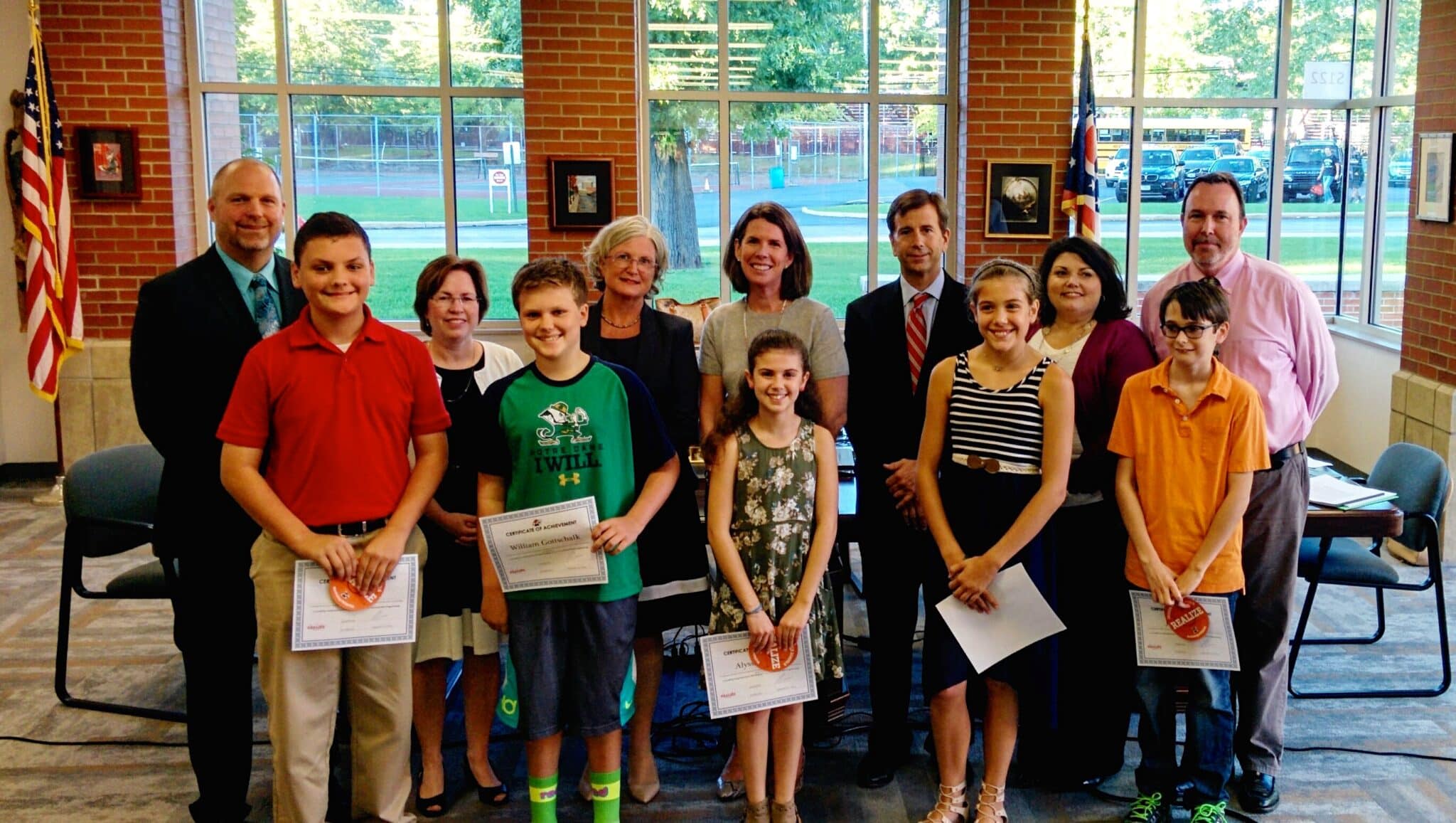 Congratulations to the Chagrin Falls’ students who successfully completed the summer 2016 Math Bridging to move into advanced math coursework this school year. They are (l to r) seventh-graders Calvin Struk-Marn and William Gottschalk, sixth-graders Alyssa Zaffiro and Grace Svette and fifth-grader James Rose. [Not pictured: seventh-grader Alex Kacir, sixth-graders Caitlyn Young, Kenny Clark and Rory Brosnan and fifth-graders Colby Wells and Alexander Kroon.]