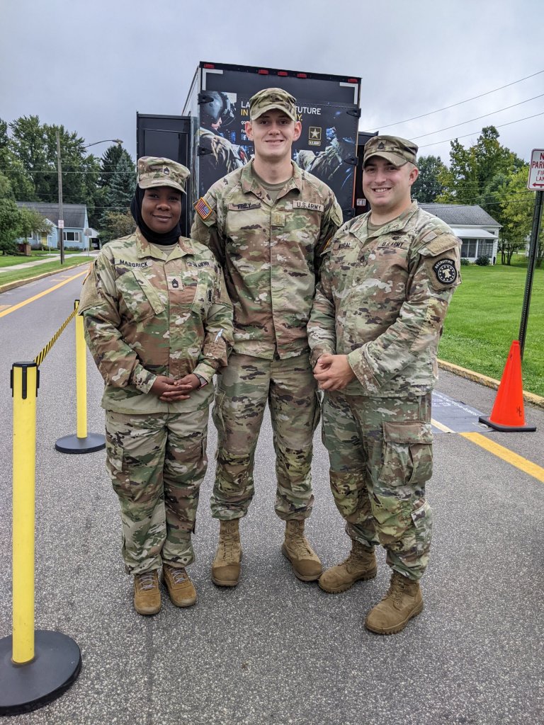 A U.S. Army educational mobile exhibit was on-site at Chardon High School on Sept. 12, engaging grades 8-12 physical education, health and history classes in flight orientation simulations. Students experienced virtual reality excursions through hands-on operation of Army helicopter simulators, including the UH-60 Black Hawk and AH-64 Apache, and also participated in physical fitness exercises while waiting in line for the simulation activities.