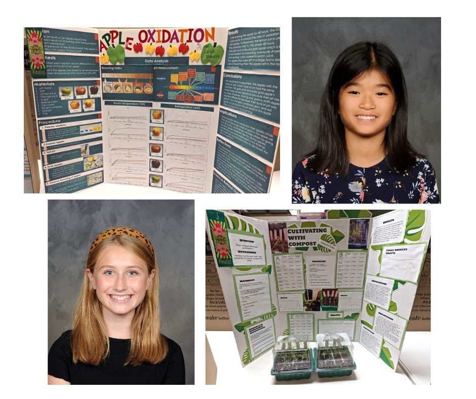 Lena’s first-place project, Apple Oxidation, tested whether an apple’s pH level affects its propensity for browning, while Natasha’s Cultivating with Compost science project examined whether compost affects seed germination.