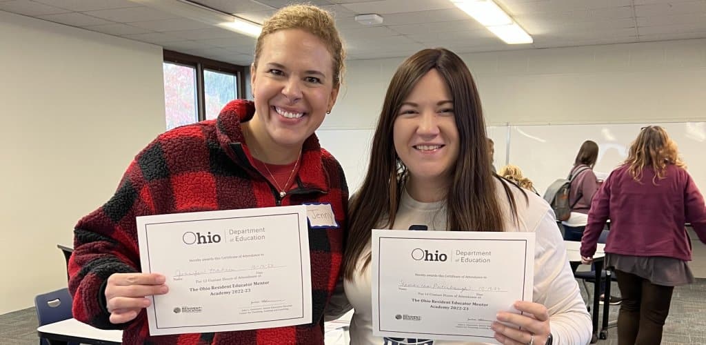 With the certification, both educators can now apply this training in mentorship of new Chardon Schools teachers through the Resident Educator Program and Assessment, which spans the first two years of a new educator’s teaching career.