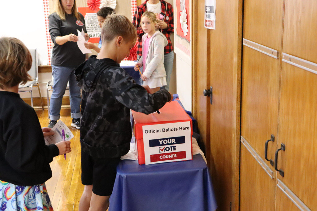 At Park Elementary School, students voted to choose the name of the school’s new pet turtle. Using voting areas set up in the Park conference room, students reviewed ballots which contained 10 potential names for the new pet before ultimately casting their vote.