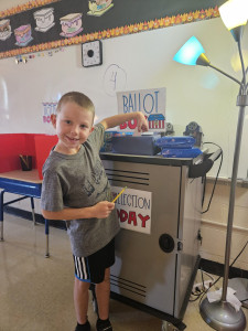 After reading about Election Day in their Scholastic News, students put their learning to action, going to their voting booths and choosing their preferred cookie. After all of the votes were tallied, Oreo was determined to be the class favorite, winning 14 votes compared to seven for chocolate chip.