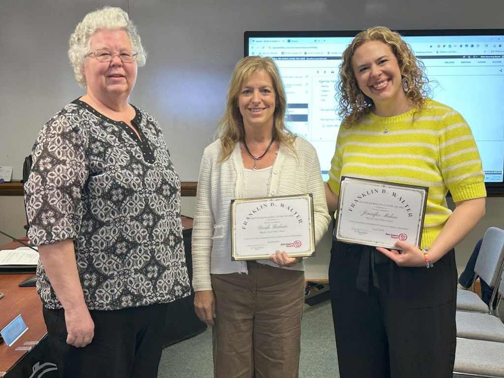 Also recognized during that meeting were Chardon Early Learning Center kindergarten teachers Jenny Maheu and Sarah Bednar, who were named recipients of the Franklin B. Walter Outstanding Educator Achievement Award for Chardon.