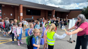 Topper Safety Leaders are assigned hallway stations during arrival and dismissal at Munson to provide all students with reminders of expected hallway behavior and to provide assistance to students as needed.