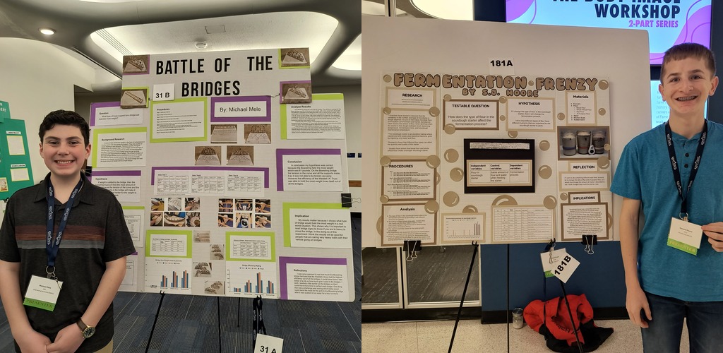 Michael Mele and S.J. Moore each earned ratings of Excellent for their work displayed at Ohio’s Regional Science Fair, which was recently held at Kent State University.