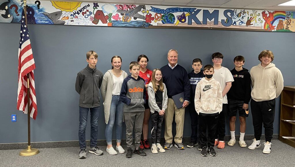 U.S. Rep. Dave Joyce (R-Bainbridge Township) recently visited Kenston Middle School to recognize the renewal of its designation as an Ohio Department of Education Purple Star school. The award recognizes a school’s commitment to serving and supporting students and families connected to the United States Armed Forces and Ohio National Guard. KMS is 1 of 432 active Purple Star schools that dedicate time and support to students in military families.
