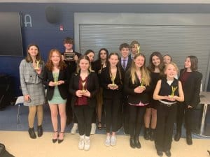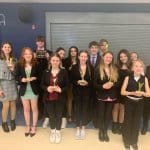 Placing first were Zoe LeFeber in Oratory, Brooke Carlson in Congressional Debate, Georgia LeFeber in Interpretation, Pearl Johnson in Declamation, and partners Reagan Carnes and Grace Voudris in Public Forum Debate, now winning 16 debates in a row over four tournaments. Additionally, Ben Yamsek placed fourth in Congressional Debate, and Elyssa Gatto placed sixth in Oratory. In Extemporaneous Debate, Charlie McBride placed seventh, and Jilly Ragsdale placed eighth. Amelie DeBoth beat a debater from Revere, and Will Turner did a great job in Congressional Debate. Avery St. John and Emma Fernandez participated in their first tournament.