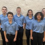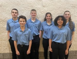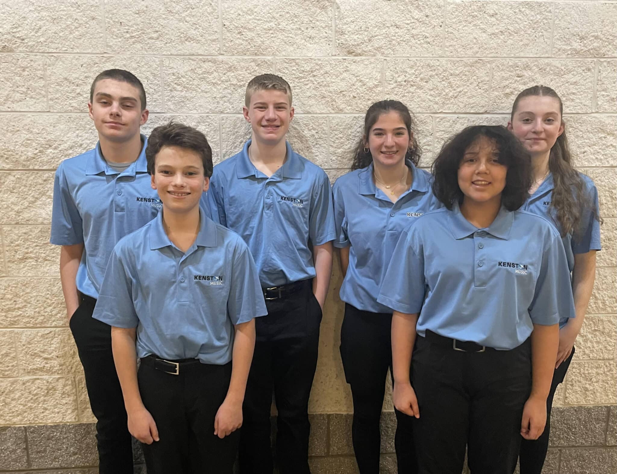Six seventh- and eighth-grade students represented Kenston Middle School at the 2023 Ohio Musical Arts Association (OMEA) District 7 Middle School Honor Band. They are tuba player Philip Brodsky, trumpet player Alex Morin, clarinetists Madison Gambatesa and Danica Pierce, French horn player Gino DeLuca and percussionist Kate Colwell.