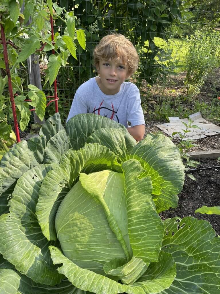 Every third grader at Timmons Elementary School was given a cabbage seedling to grow at home in April as part of a contest sponsored by the Kenston High School Giving Garden Club. Students then submitted pictures, and Elliott Ball was selected as the winner. Thank you to Bonnie Plants for donating the cabbage plants for the contest.